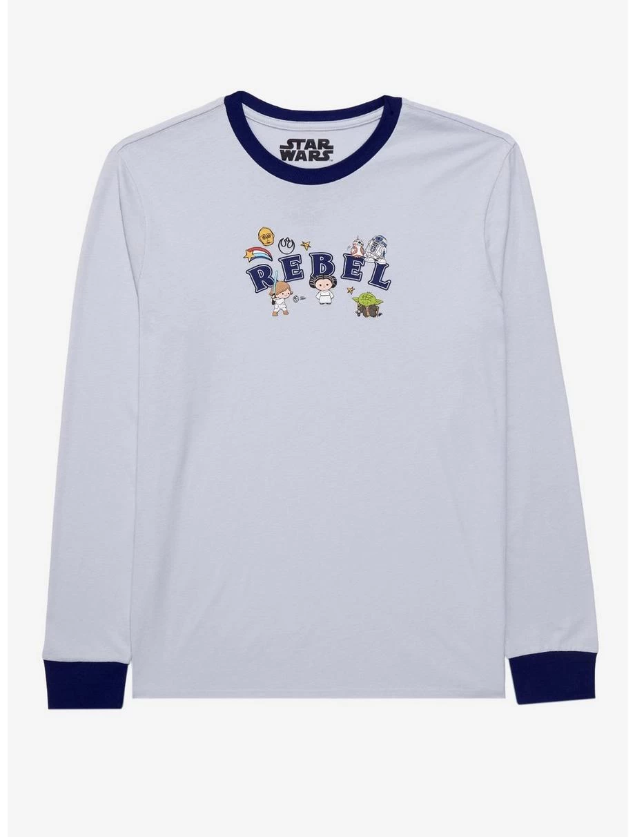 You can fly with the best of them with this Star Wars-inspired long sleeve from Our Universe! Features chibi versions of Luke, Leia, Yoda, and more classic characters surrounding “Rebel” puff print lettering, making for the perfect style addition for fans of the space saga.Â
