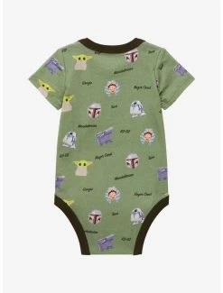 Star Wars The Mandalorian Cartoon Portraits Allover Print Infant One-Piece – BoxLunch Exclusive