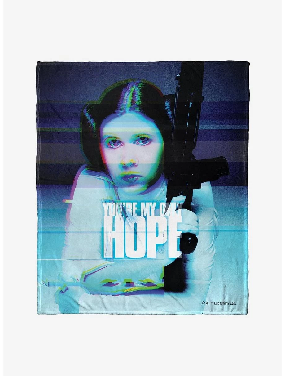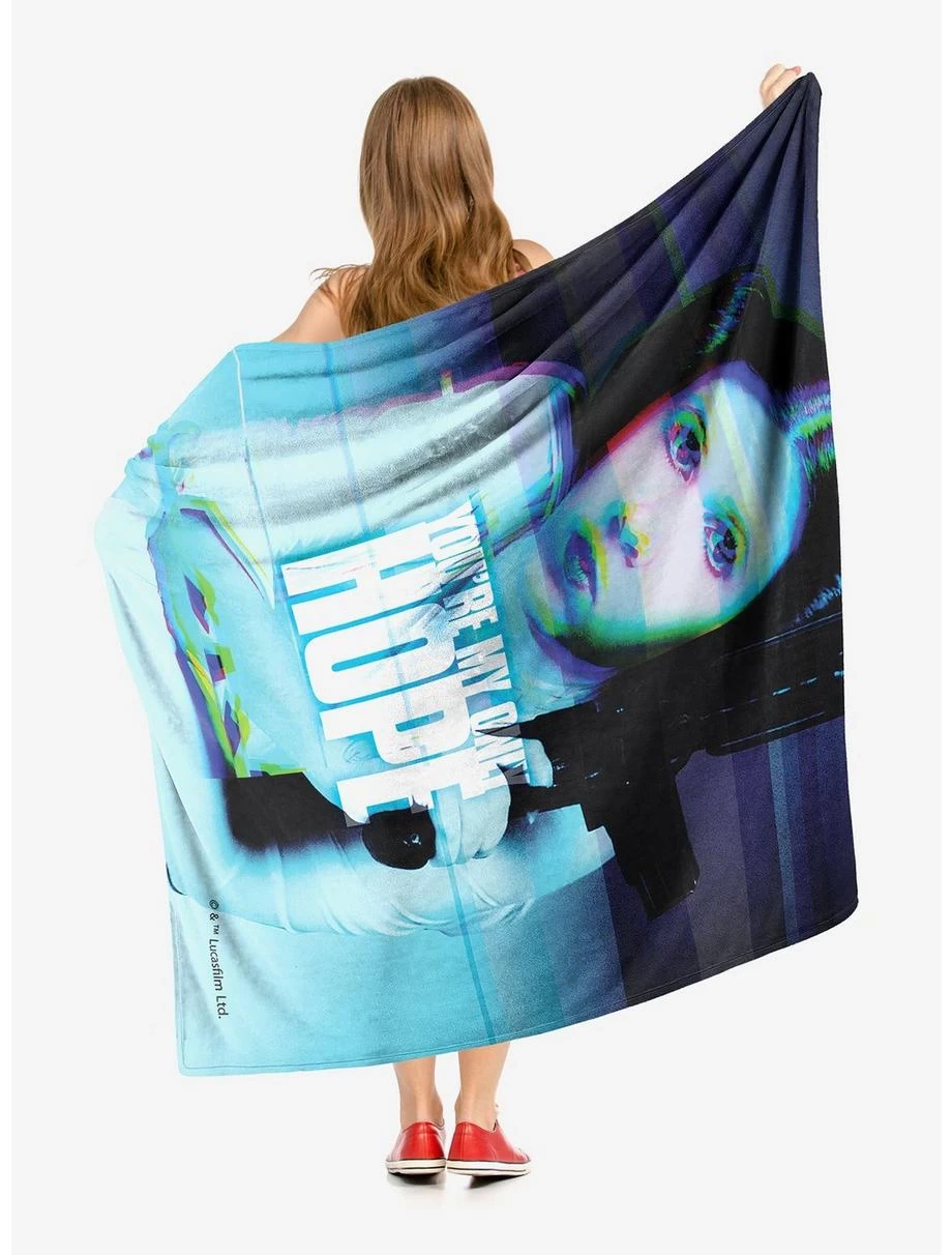 Silky soft and cozy, this Star Wars “Digital Leia” Silk Touch Throw Blanket by The Northwest is ideal for snuggling. Grab our high-quality printed throw, it’s the perfect home accessory. Features holographic Princess Leia and “You’re my only hope”. Silky-soft, warm and cozy throw; make great gifts for friends and loved ones. Measures 50″W x 60″L. Made of 100% Polyester. Machine wash cold separately using delicate cycle and mild detergent. Do not bleach. Machine dry separately on gentle cycle. Remove promptly. Do not iron.