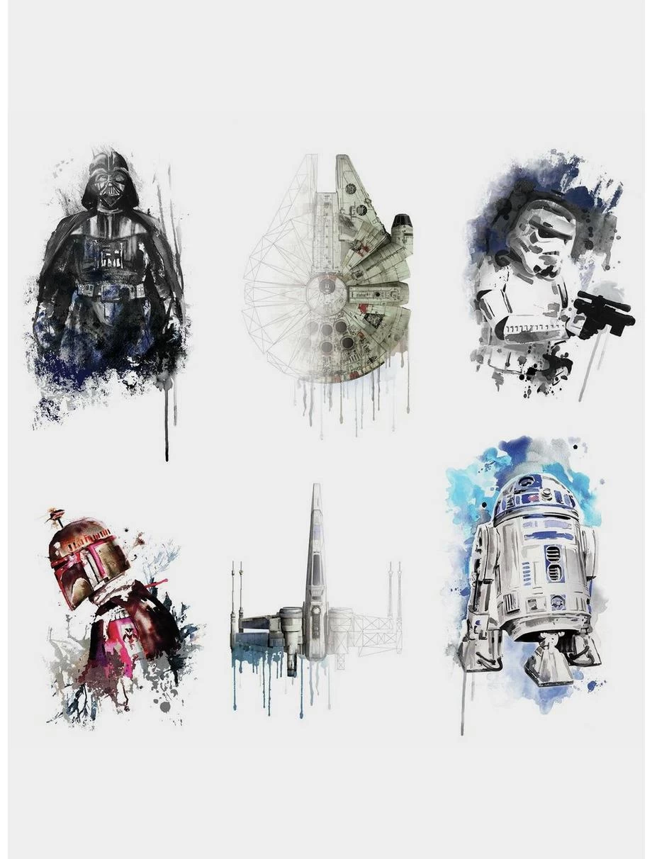 Walls instantly come to life with Star Wars Iconic Watercolor Peel and Stick Wall Decals by. Complete with six wall decals, spread this decorative theme throughout an entire room in seconds. The application process is fast and easy. Simply peel and stick decals to any smooth, flat surface. Remove, reposition, and reuse as often as needed while keeping walls and decals completely safe. Recreate this look in your room today with.