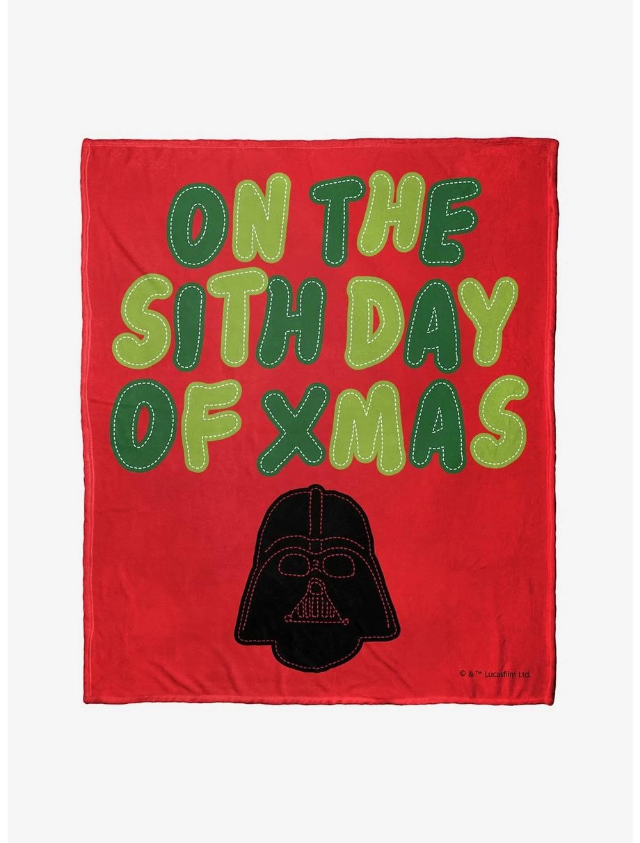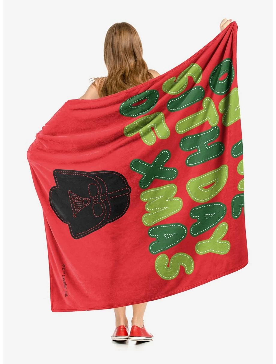 Silky soft and cozy, this Star Wars “Sith Day” Silk Touch Throw Blanket by The Northwest is ideal for snuggling. Grab our high-quality printed throw, it’s the perfect home accessory. Features cartoon Darth Vader below “On the Sith day of Xmas” on a bright red background. Silky-soft, warm and cozy throw; make great gifts for friends and loved ones. Measures 50″W x 60″L. Made of 100% Polyester. Machine wash cold separately using delicate cycle and mild detergent. Do not bleach. Machine dry separately on gentle cycle. Remove promptly. Do not iron.