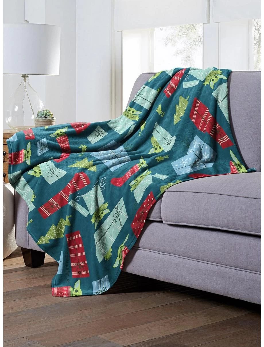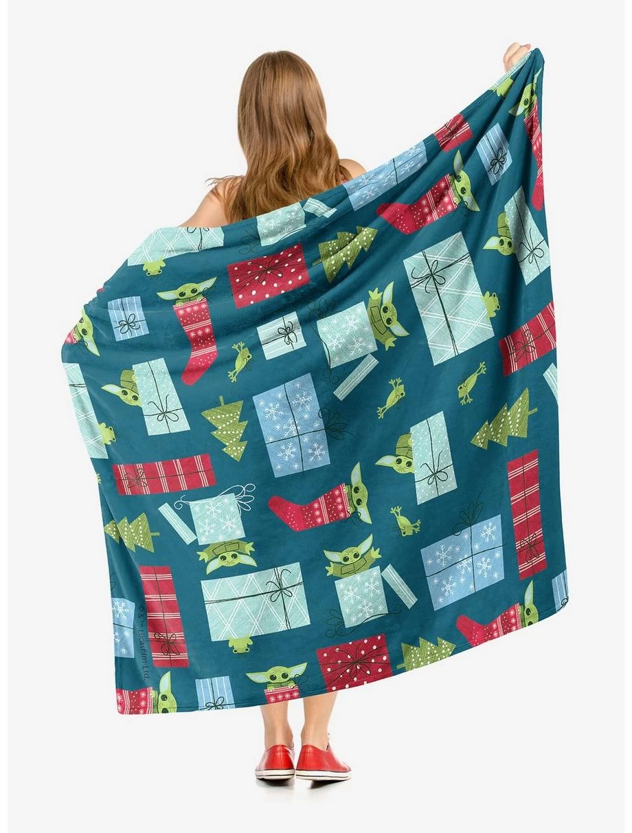 Silky soft and cozy, this Star Wars: The Mandalorian “Best Present Ever” Silk Touch Throw Blanket by The Northwest is ideal for snuggling. Grab our high-quality printed throw, it’s the perfect home accessory. Features The Child, resembling a baby Yoda, stuffed into Christmas presents. Silky-soft, warm and cozy throw; make great gifts for friends and loved ones. Measures 50″W x 60″L. Made of 100% Polyester. Machine wash cold separately using delicate cycle and mild detergent. Do not bleach. Machine dry separately on gentle cycle. Remove promptly. Do not iron.