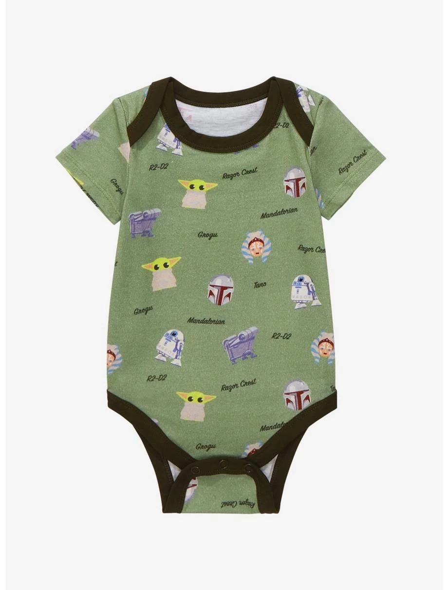 Star Wars The Mandalorian Cartoon Portraits Allover Print Infant One-Piece – BoxLunch Exclusive