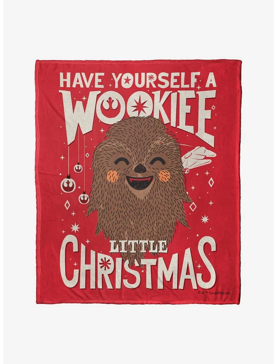 Silky soft and cozy, this Star Wars “Wookie Xmas” Silk Touch Throw Blanket by The Northwest is ideal for snuggling. Grab our high-quality printed throw, it’s the perfect home accessory. Features cartoon Chewie saying to have yourself a wookiee little Christmas. Silky-soft, warm and cozy throw; make great gifts for friends and loved ones. Measures 50″W x 60″L. Made of 100% Polyester. Machine wash cold separately using delicate cycle and mild detergent. Do not bleach. Machine dry separately on gentle cycle. Remove promptly. Do not iron.